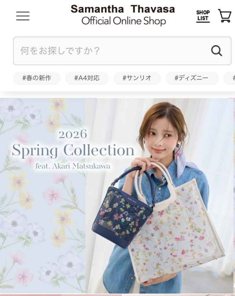 サマンサタバサ(Samantha Thavasa)は、日本発のファッションブランドの一つで、バッグや小物など幅広いアイテムを展開しています。プロモーションにおいては、国内外のモデルや著名人を起用した取り組みが見られることもあり、ブランドの世界観づくりに活かされています。