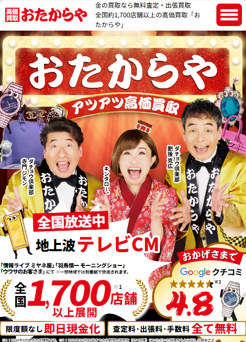 おたからやは、全国に店舗を展開している買取サービスのひとつです。
