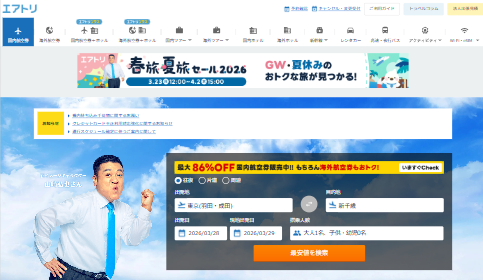 エアトリは、国内線・国際線の航空券を取り扱う予約サービスで、