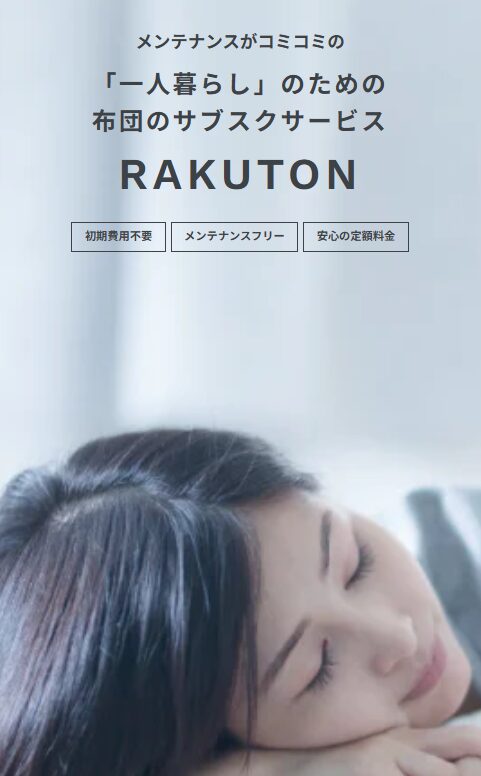 RAKUTONは、寝具一式をまとめて利用できる布団サブスクサービスのひとつです。