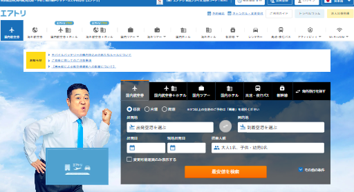 エアトリは、航空券や宿泊施設をまとめて検索・予約できるサービスの一つです。複数の航空会社(LCCを含む)を対象とした検索機能があり、条件に応じてプランを比較しながら検討することができます。