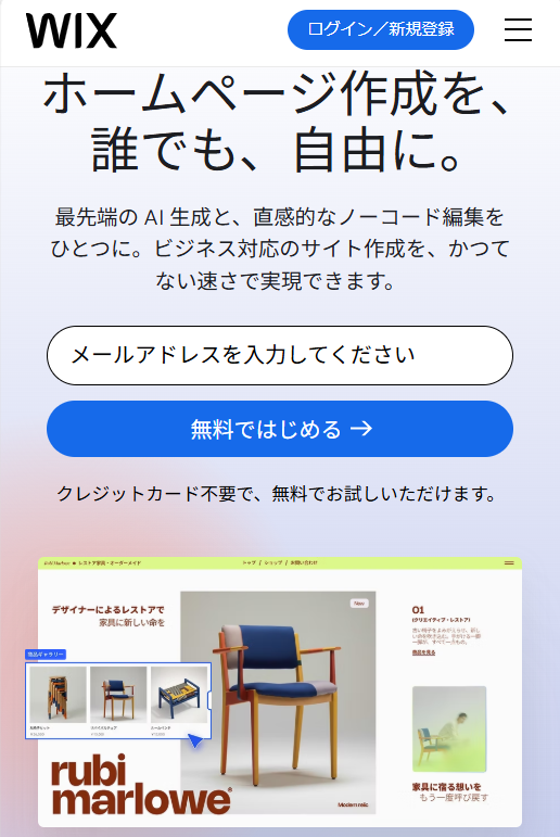 | Wix(ウィックス) | テンプレートと機能を組み合わせたサイト作成に対応 | コーポレート / ブログ / ECサイト | 多数テンプレートあり | 0円~ | 拡張機能 / EC対応 / スマホ対応 |