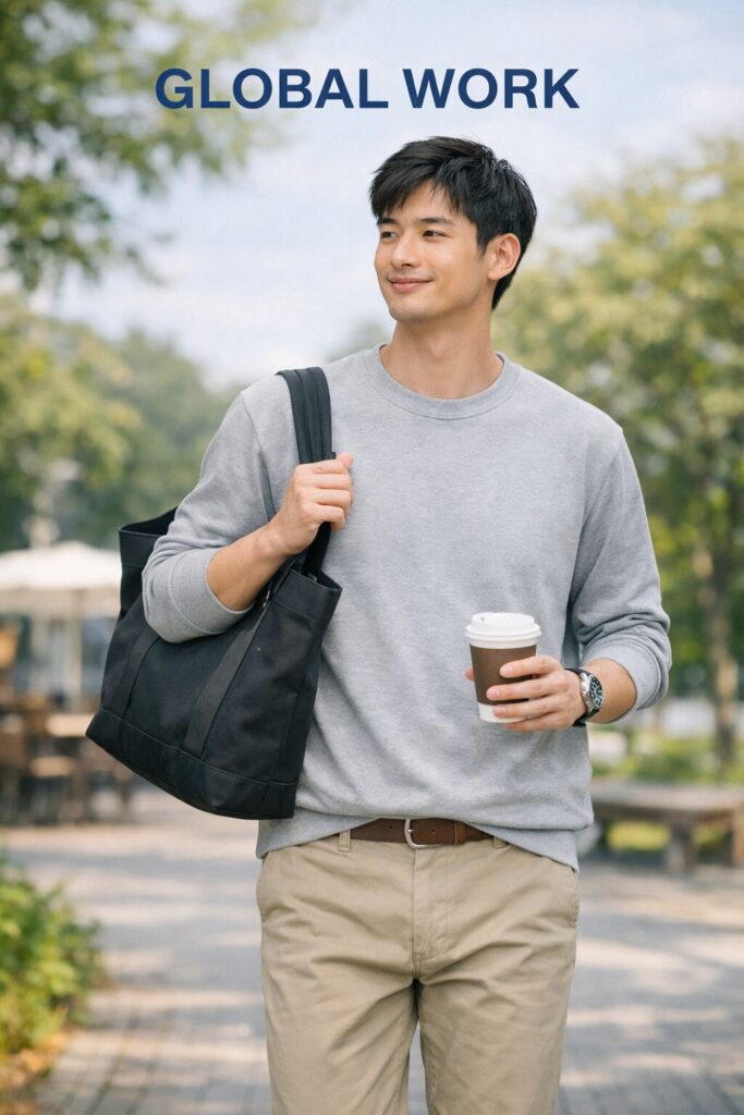 例えば、ジャケットを羽織るかどうかや、足元をスニーカーにするか革靴にするかによって、カジュアル寄りにもフォーマル寄りにもバランスを変えることが可能です。
