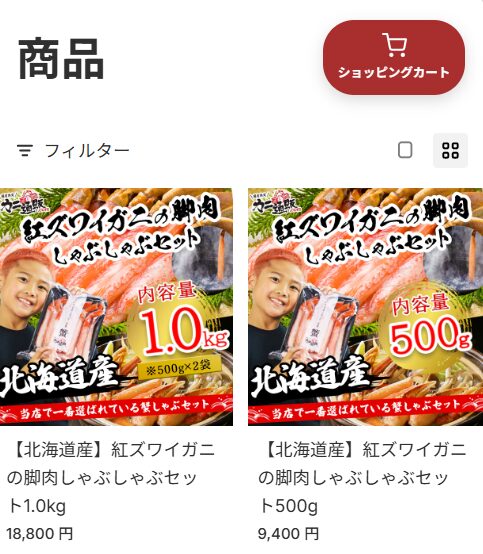 取り扱い商品には、ズワイガニ・タラバガニ・毛ガニなどがあり、サイズや加工状態の異なる商品が用意されている場合があります。用途や人数に応じて選択できる点が特徴とされています。