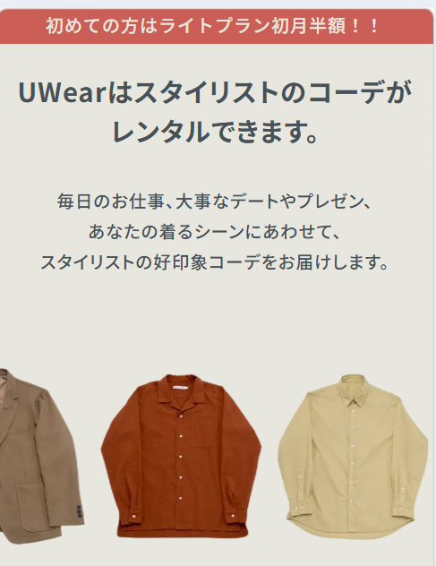 UWear(ユーウェア)は、スタイリング提案とレンタルを組み合わせたサービスの一例です。詳細な条件や利用方法はサービスごとに異なるため、公式サイトで最新情報を確認しながら、他のサービスと比較検討することが参考になります。