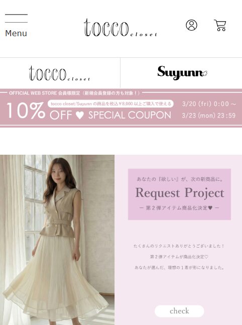 tocco closetは、清楚さや上品さを意識したデザインのアイテムを展開しているレディースブランドです。