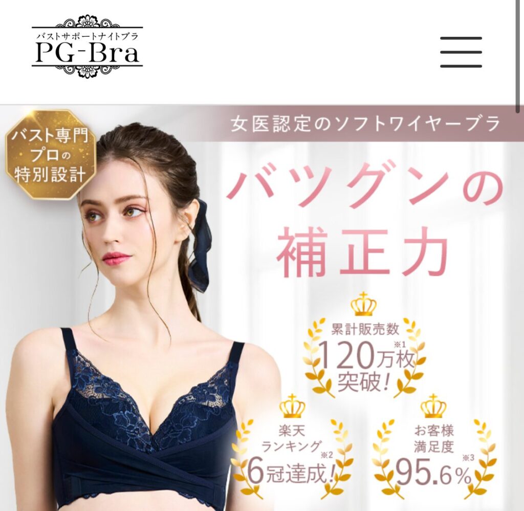 PGブラは、就寝時の着用を想定して設計されたナイトブラの一つで、着用中のバストラインを整えることを目的とした構造が採用されている商品として紹介されています。