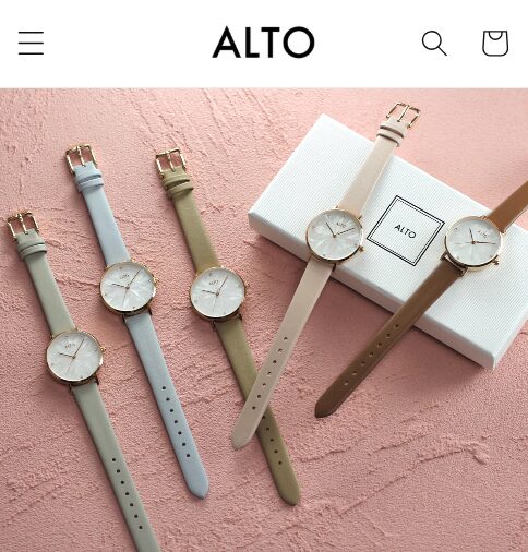 ALTO(アルト)は、シンプルで落ち着いた印象のデザインを中心に展開しているレディース腕時計ブランドです。装飾を抑えたミニマルなテイストが特徴とされており、日常のコーディネートに取り入れやすいアイテムが揃っています。